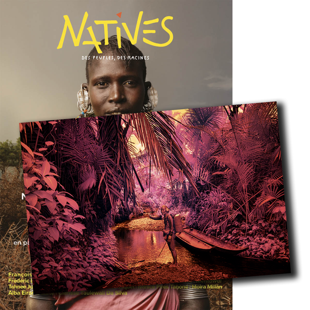 Natives crée le catalogue de l’exposition Hommage présentée au Quai de la Photo du 10 janvier au 28 février 2025, sous forme d’un numéro exceptionnel de 242 pages, pour aller plus loin dans la découverte des populations photographiées au travers d’interviews de spécialistes, ethnologues, photographes et représentants d’ONG. Il s'agit du premier média qui est dédié aux peuples autochtones. Il encourage le dialogue et participe à défendre leurs droits. En combinant des photographies saisissantes à des textes riches en informations, cette revue ambitionne de sensibiliser le public en offrant une immersion unique dans la vie quotidienne de ces communautés. Une invitation à découvrir, comprendre et préserver ces cultures en péril. Dans un monde en quête d'équilibre entre tradition et modernité, Natives s’impose comme un acteur incontournable pour donner la parole aux peuples racines des cinq continents. Cette revue, destinée au grand public, se distingue par son approche humaniste, mettant en lumière la richesse des cultures ancestrales. Plus qu’un simple média, Natives agit comme un véritable vecteur de transmission des savoirs, sagesses et pratiques traditionnelles. Édition de tête signée. Tirage jet d'encre sur papier Photo Rag Baryta Hahnemühle 315g (sur Epson) réalisé par le laboratoire PICTO. Format du tirage : 18 x 24 cm.